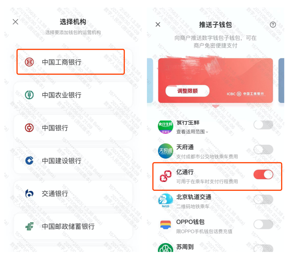 不過(guò),界面新聞?dòng)浾咦⒁獾剑壳爸挥泄ば袛?shù)字人民幣子錢(qián)包接入“億通行”,如未有工行卡,也可從其他五大行轉(zhuǎn)入,速度與普通轉(zhuǎn)賬無(wú)異。此外,僅“億通行”APP可開(kāi)通數(shù)字人民幣支付,線下的自動(dòng)購(gòu)票機(jī)并未開(kāi)通相關(guān)支付渠道。