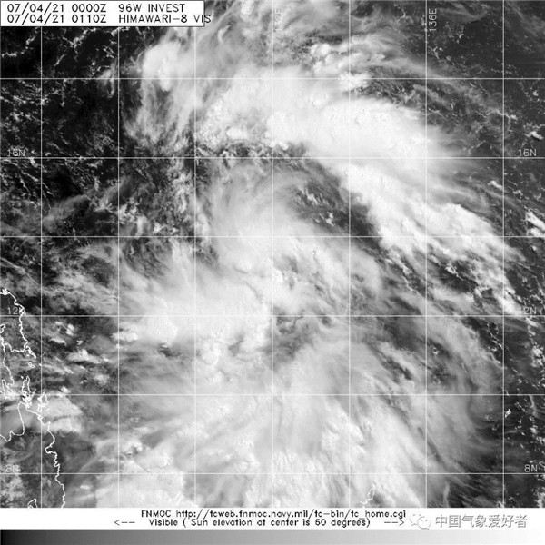 7月4日下午臺(tái)風(fēng)胚胎96W云圖可見,系統(tǒng)的螺旋性已經(jīng)比較強(qiáng)。來自FNMOC