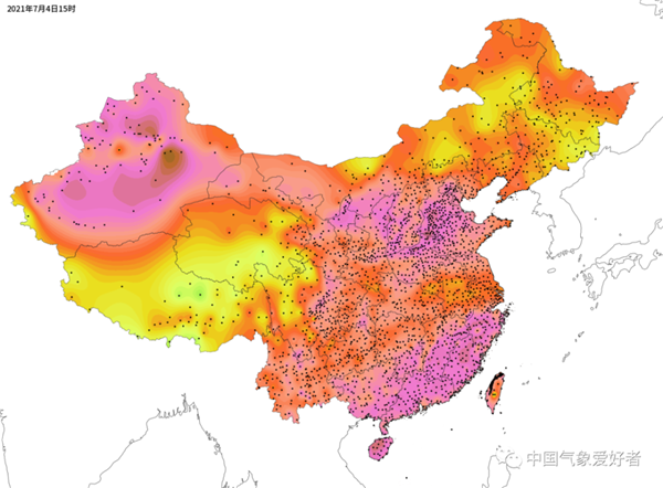 7月4日下午3點(diǎn)我國氣溫分布圖,中氣愛制作