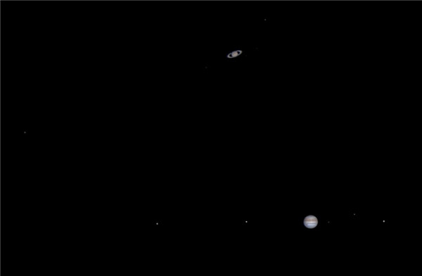 北京市天文愛好者宗海陽2020年12月21日拍攝的土星和木星“相合”。(本人供圖)
