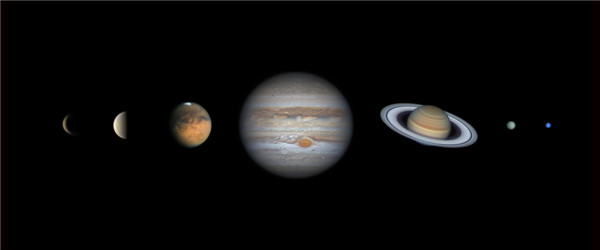 廣東省天文愛好者周志偉2020年拍攝的水星、金星、火星、木星、土星、天王星、海王星(多張疊加)。(本人供圖)