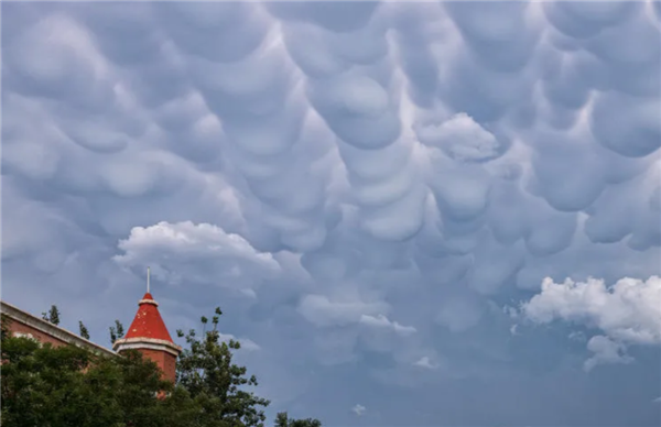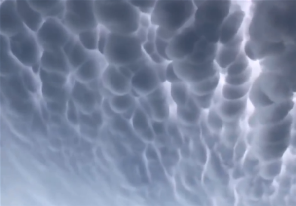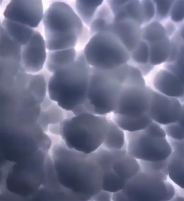 一般來說,在看到這種云,確實(shí)相當(dāng)嚇人,很多人根本就沒有見過,而它的形成主要是在極端性氣候的時(shí)段,主要是在積雨云下方形成的乳狀型積云,概念就是“當(dāng)下沉氣流中溫度較冷的空氣與上升氣流中溫度較暖的空氣相遇時(shí),將會(huì)形成如同一個(gè)個(gè)袋子形狀的乳狀云”。