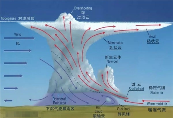 所以這就是它的形成模式。當(dāng)然大家也看到了“積雨云”的概念,我們也叫“雷暴云”,是積狀云的一種,那這就知道這是一種極端性的氣候模式下可能出現(xiàn)的,當(dāng)然也可能在極端性氣候之后出現(xiàn)。所以“石頭云”的出現(xiàn),其實(shí)屬于不好氣候現(xiàn)象的征兆,或者是不好的氣候現(xiàn)象已經(jīng)出現(xiàn)了,再次出現(xiàn)的這種情況。