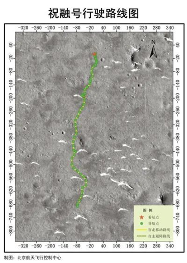 祝融號(hào)行駛路線圖(截止到8月15日)。北京航天飛行控制中心供圖