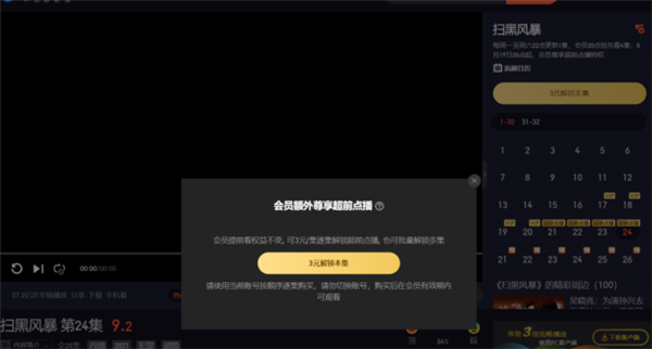 官網介紹,超前點播單集購買價格在3元一集,并且需逐集依次按順序解鎖。