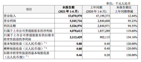 8月27日晚間,中興通訊發布2021年半年度報告。報告顯示,中興通訊上半年實現營業收入530.7億元,同比增長12.4%;凈利潤為40.8億元,同比增長119.6%;扣除非經常性損益的凈利潤為21.1億元,同比增長134.2%。