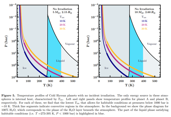 Hycean星球中,有潮汐鎖定的“黑暗”Hycean星球,它們可能有一側永久都為黑夜,而只有黑夜這一側是宜居的;還有“寒冷”Hycean星球,它們接收的恒星輻射很少。