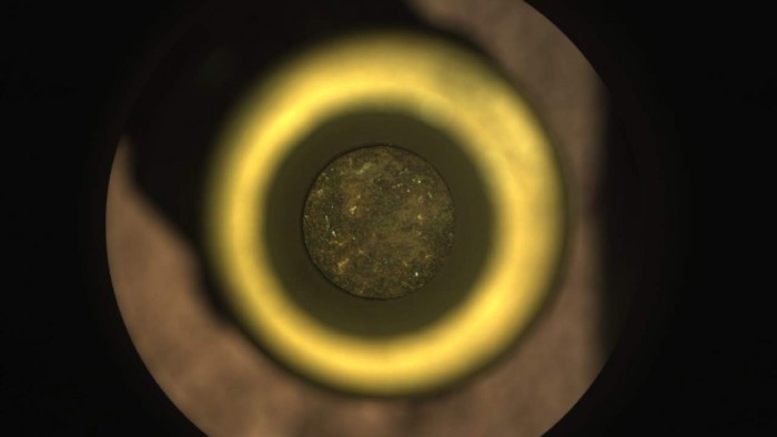 在宣布“毅力號”探測器的第二次樣品采集工作獲得成功的幾天后,美國宇航局(NASA)分享了存放樣品的鈦管內的實際樣品的圖像。該樣本圖像是通過漫游車上的一個名為"采樣和緩存系統相機"的攝像頭實現的,證實了火星巖石樣本的一小部分已經被充分和完整地儲存起來。