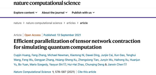 據悉,達摩院量子實驗室與阿里云 ECS 合作者在量子計算經典模擬課題上的研究成果近日在 Nature 子刊《Nature Computational Science》上發表。該論文提出一分布式張量網絡收縮算法框架,在一量子電路的基準模擬任務上達到 3 個數量級以上的加速。