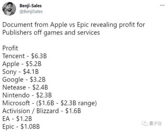 但從游戲分析師@Benji-Sales 公布的數據來看,蘋果公司的游戲利潤同樣排在全球前列。