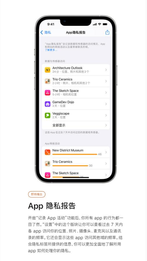10 月 12 日消息,近日,軟件后臺索取敏感信息受到關注,據蘋果隱私官方網站顯示,即將推出 App 隱私報告功能,據了解,該功能可在系統內直接將軟件后臺行為數據轉化為可視化報告。