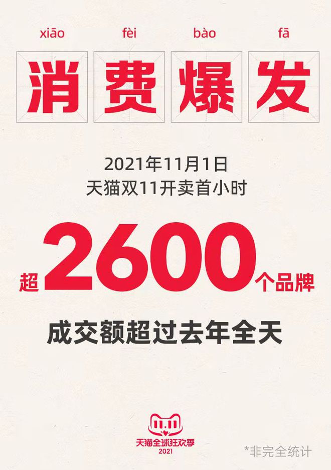 據不完全統計,開售首小時,超 2600 個品牌的成交額超過去年全天。