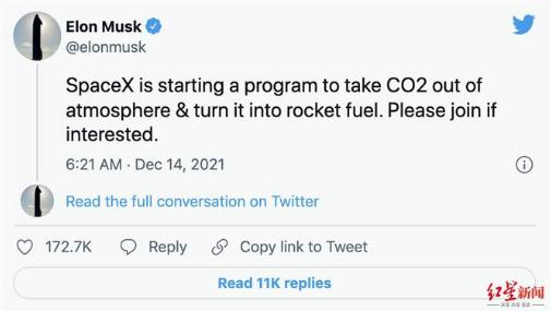 ▲周一,馬斯克發(fā)文宣布,計(jì)劃將 CO2 轉(zhuǎn)為燃料。
