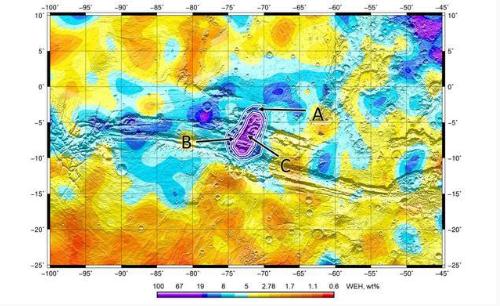 研究人員表示,此前火星上發(fā)現(xiàn)的水大多是在極地區(qū)域,而這次能在赤道附近地表一米以下發(fā)現(xiàn)富含水的“綠洲”,要歸功于微量氣體軌道飛行器上的高分辨率超熱中子探測器(FREND)。通過進行中子通量測繪,更多之前未被探測到存在水的區(qū)域可能會顯現(xiàn)出來。