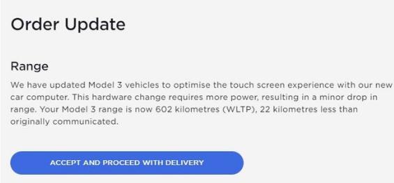 不過,雖然新的處理器帶來了更加流暢快速的車機使用體驗,但根據(jù)特斯拉官方的說法,新的車機硬件會對續(xù)航造成小幅影響。根據(jù)海外官方顯示,海外市場 Model 3 后驅版在使用 AMD 芯片后,搭載 18 英寸輪輞車型的 WLTP 續(xù)航里程從 637 公里降至 626 公里,搭載 19 英寸輪輞車型的續(xù)航里程由 614 公里降至 602 公里。同時,根據(jù)海外用戶提供的訂單更新消息來看,續(xù)航降低主要是由于全新車機硬件優(yōu)化了觸摸屏體驗,這種硬件變動需要更多功率,所以會導致續(xù)航略有下降。不過,目前官網(wǎng)并未對續(xù)航里程信息進行調整。