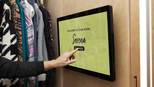 在掃描商品上的二維碼后,購物者可以點擊亞馬遜應用程序中的按鈕,將商品添加到試衣間或發送到提貨柜臺。在試衣間,亞馬遜增加了觸摸顯示屏,購物者可以使用它對商品進行評級,或者要求將不同款式或尺寸的商品送到試衣間。然后,每件衣服都被放在試衣間的“安全衣柜”里,在店員送衣服后,衣柜就會解鎖。亞馬遜表示,這使得顧客可以繼續購物,而不必離開試衣間。