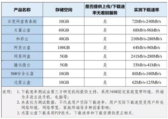 除了百度網(wǎng)盤之外,其他的天翼云盤、和彩云、阿里云盤、騰訊微云也都已經(jīng)整改完畢,均能提供無差別速率服務(wù),其中存儲空間最小的為5GB,最高可享受100GB空間。