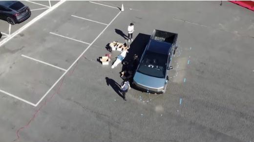 Cybertruck 在弗里蒙特工廠的測試場附近被發現,暗示了其身份。在那輛電動皮卡附近依稀可以看到幾個人,在它周圍到處修修補補。