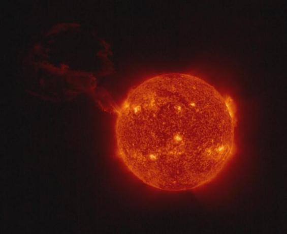 據(jù) New Atlas 報(bào)道,太陽(yáng)軌道飛行器(Solar Orbiter)捕捉到了太陽(yáng)巨大噴發(fā)的戲劇性圖像。據(jù)歐空局(ESA)稱(chēng),這是有史以來(lái)在單張圖像中觀察到的最大的日珥噴發(fā),整個(gè)太陽(yáng)盤(pán)都在一張圖片中,幸運(yùn)的是,它并沒(méi)有指向地球。