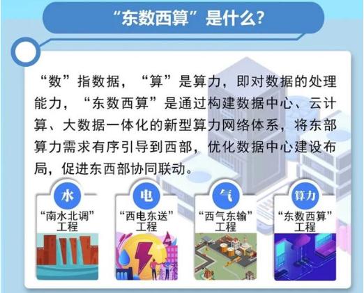 所謂“東數西算”,就是指通過構建數據中心、云計算、大數據一體化的新型算力網絡體系,將東部算力需求有序引導到西部,優化數據中心建設布局,促進東西部協同聯動。簡單地說,就是讓西部的算力資源更充分地支撐東部數據的運算,更好為數字化發展賦能。