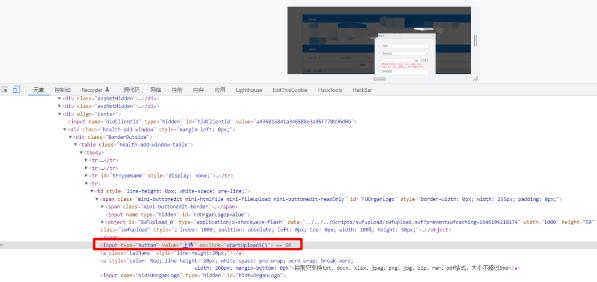 當(dāng)時(shí)又不想放棄這個(gè)上傳點(diǎn),只能強(qiáng)行分析一下相關(guān)的 JS 和 HTML 代碼。嘗試修改參數(shù)讓上傳功能正常使用。 點(diǎn)擊上傳,定位 HTML 源碼