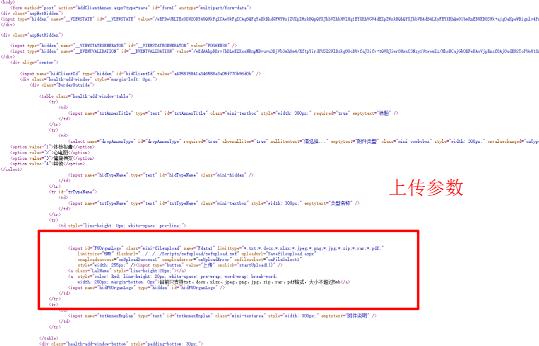 查看網(wǎng)頁(yè)源碼,有點(diǎn)復(fù)雜,刪改了幾個(gè)可能影響上傳的參數(shù),還是不能點(diǎn)擊瀏覽,上傳文件