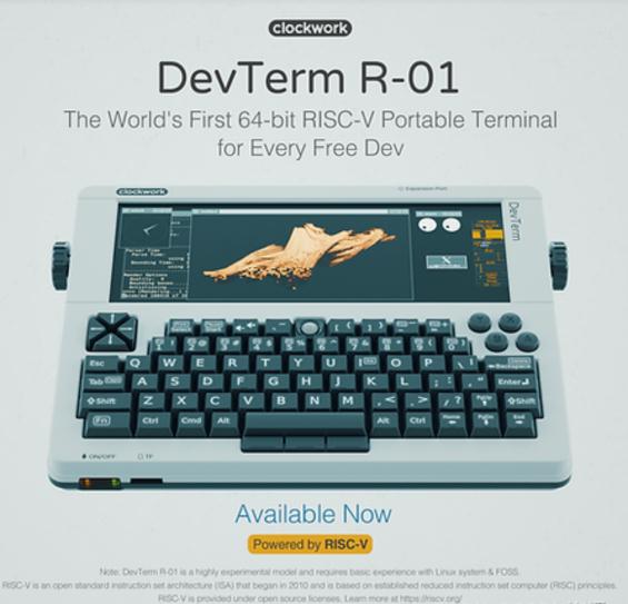 Clockwork 公司曾針對開發者推出過一款開源便攜式終端設備 DevTerm,如今,他們宣布要推出一個由 RISC-V CPU 驅動的 DevTerm。這款設備被命名為 DevTerm R-01,售價為 239 美元,其配置主要如下: