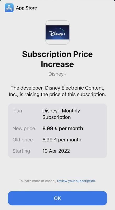 當(dāng) Disney+ 最近將其價(jià)格提高到每月 7.99 美元時(shí),一些開(kāi)發(fā)者注意到 Disney+ 應(yīng)用程序發(fā)出的通知更像是關(guān)于價(jià)格上漲的提醒,而不是明確的是否加入。Disney+ 用戶收到的通知中有一個(gè)大的"確定"按鈕,讓他們知道這一變化,但沒(méi)有內(nèi)置的退出按鈕,而是由應(yīng)用程序提供一個(gè)鏈接來(lái)改變訂閱。