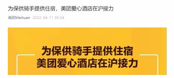 美團(tuán)發(fā)布公告 為上海保供騎手提供住宿并給予抗疫補貼