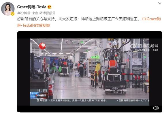 今日晚間,特斯拉對(duì)外事務(wù)副總裁陶琳通過(guò)社交媒體表示,特斯拉上海超級(jí)工廠今天順利復(fù)工。