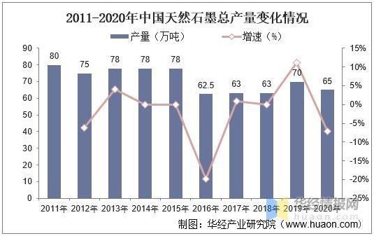 中國是全球最大的石墨生產國,2020 年中國石墨產量為 65 萬噸,約占全球石墨總產量的 60% 左右。2020 年,中國已探明石墨儲量 7300 萬噸,占全球儲量的 23%,位居全球第二。此外,中國的電池級石墨供應量占全球總量約 85%。