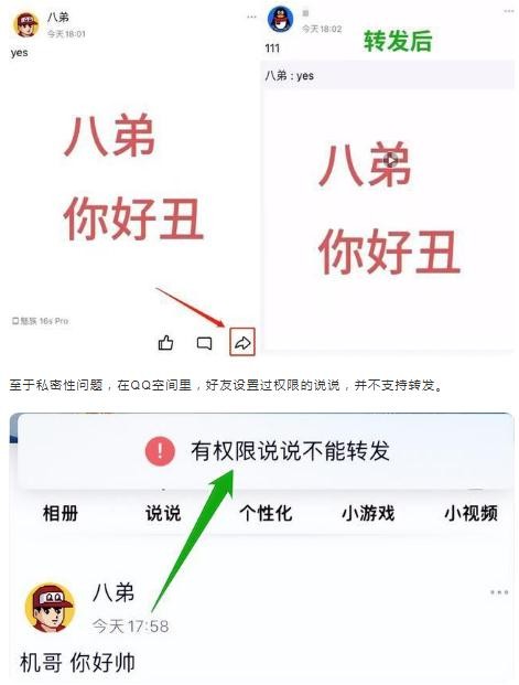 那看看自家企鵝,隔壁QQ空間里,說說同樣支持轉發。