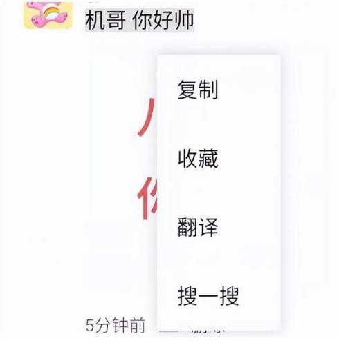 以前呢,我們看朋友圈時,如果長按朋友圈內容,會出現復制、收藏、翻譯、搜一搜四個選項。