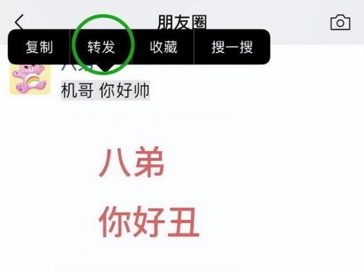 我放著好好的朋友圈評論功能不用,我私下轉發回去給八弟,私聊吐槽?