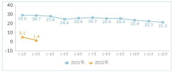 營業成本增速回落。一季度,我國規模以上互聯網企業營業成本同比增長 4.4%,增速較 1-2 月份回落 3.8 個百分點。共實現利潤總額 154.5 億元,同比下降 10.3%,降幅較 1-2 月份加深 2.9 個百分點。