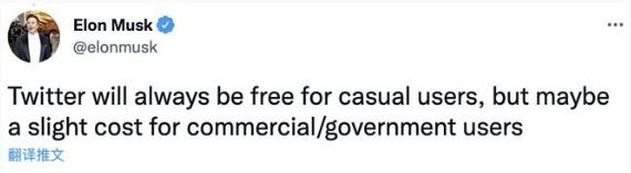 當地時間 5 月 3 日,馬斯克發表推文稱,推特將永遠對普通用戶免費,但商業和政府用戶可能要支付一些費用。