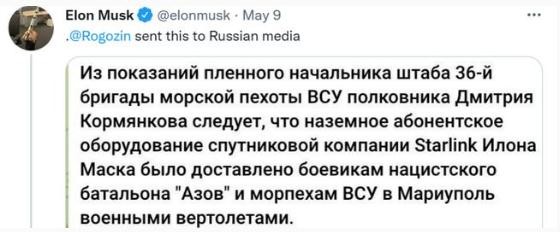 “沒有人想要你,不要再胡鬧了。今天我的國家正在慶祝一個(gè)偉大的日子——反法西斯主義勝利日。不幸地是,在你向?yàn)蹩颂m納粹提供軍事通信設(shè)備之后,我不能在這個(gè)節(jié)日里祝賀你。想一想,埃隆,你是站在哪一邊的。” 羅戈津用俄語回應(yīng)道。
