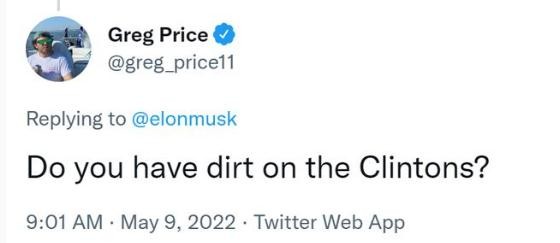 不過,馬斯克的粉絲并沒有將他的發(fā)言與羅戈津的來往聯(lián)系起來。相反,很多人開玩笑說,馬斯克一定有“克林頓夫婦的黑料”(dirt on the Clintons),指與比爾·克林頓和希拉里·克林頓有某種聯(lián)系的人往往會神秘死亡。例如 1993 年白宮副顧問文森·弗斯特(Vince Foster)的自殺,2016 年民主黨全國委員會工作人員塞斯·里奇 (Seth Rich)被武裝搶劫槍殺,以及億萬富翁戀童癖者杰弗里·愛潑斯坦(Jeffrey Epstein)被官方裁定自殺的神秘死亡。