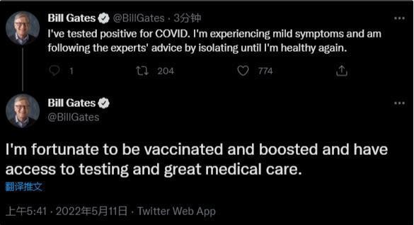 據央視報道,比爾?蓋茨在今日在社交平臺上表示,他的新冠檢測結果呈陽性,而且此前他已經接種了新冠疫苗加強針。蓋茨表示,他的新冠癥狀輕微,正在聽從專家的建議進行隔離直到恢復。