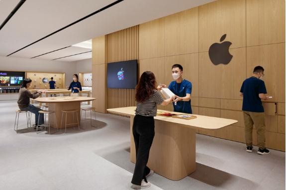 據介紹,Apple 武漢零售店采用花崗巖地面與木飾墻面,讓店內與商場大廳更顯明亮通透。在零售店內,顧客可以探索陳列的 Apple 產品與配件,并向 Specialist 專家尋求技術支持。Apple 武漢團隊成員將協助顧客選購商品并對設備進行私人設置、選擇分期付款方案、使用符合條件的設備換購新機、預約在線支持等。