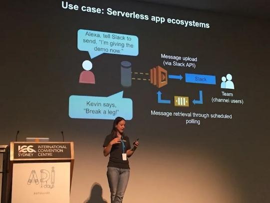 在應用程序生態系統中,應用程序或工作流是在無服務器環境中創建的,并結合了 AWS 功能和產品以及第三方服務商 API。Bonner 舉了一個例子,有人告訴 Amazon Echo,他們正在做演示,然后語音數據觸發 lambda 函數,通過 Slack API 將該消息傳遞給遠程團隊。然后在無服務器環境中輪詢確定團隊何時做出響應并向 Echo 發送反饋信息。