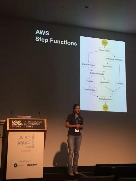 最近發布的 AWS Step Functions 現在為無服務器工作流程的可能性增加了更復雜的功能。可以在 Step Functions 中創建決策樹,然后與 Lambda 和 AWS 產品對齊以執行工作流分支操作(盡管 Amazon Web Services 在澳大利亞突出顯示 Step Functions 令人困惑,因為它在澳大利亞尚不可用)。例如,使用發布/訂閱消息傳遞模型,可以通過狀態機可視化并擁有所有函數和分布式組件。用戶可以通過 Step Functions 和 lambdas 映射客戶入職流程、進入 CRM、購物車訂購和訂單履行,并自動添加 AWS 工具以確保工作流程能夠完成。因此,雖然 Fromm 談到無服務器主要是異步、無狀態和短暫的,但一旦進入更復雜的工作流和應用程序,一些持久狀態和進行同步調用的能力就會發揮作用。Step Functions 提供狀態機,以便 Lambda 函數可以為業務流程提供一定程度的即時狀態,其中無服務器應用程序可能需要結合同步和異步調用鏈。但是,像 iRobots 的 Ben Kehoe 這樣的無服務器高級用戶認為,Step Functions 當前的定價結構過于苛刻,無法在無服務器環境的生產中使用它。此外,默認節流限制表明其預期用途不包括彈性縮放,只包括瞬態事件調度。「我希望狀態即服務成為一種服務范式,可以用于無服務器架構中 FaaS 所需的低級瞬態狀態,無論是通過 Step Functions 還是其他服務,」Kehoe 在 Step Functions 首次發布之后在自己博客中寫道。