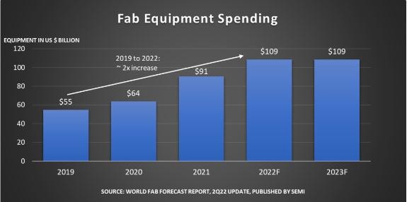報告稱這是繼 2021 年增長 42% 后,全球晶圓廠設備支出將連續第三年增長。2023 年晶圓廠設備投資預計將依然強勁。