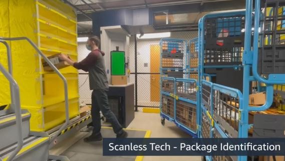 此外,亞馬遜還展示了可以用來代替手動掃描條形碼的設備。工作人員站在攝像頭系統前,該攝像頭系統無需停下來掃描標簽即可識別包裹。