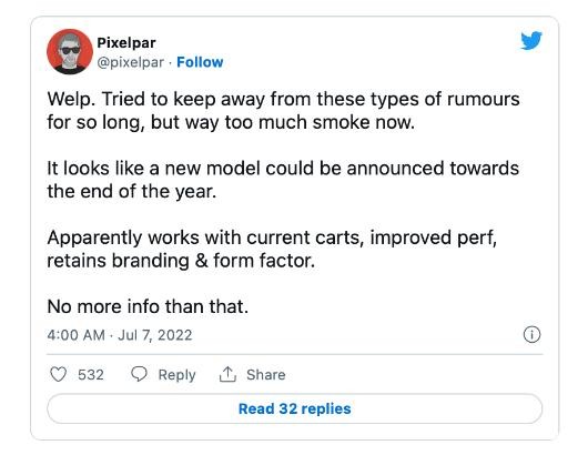 據(jù)推特爆料者 Pixelpar 消息,新的 Switch Pro 機(jī)型可能會(huì)在今年年底前發(fā)布。他認(rèn)為,新的機(jī)型將保持相同的外形設(shè)計(jì),支持當(dāng)前的基座。新款 Switch 也將提供更好的性能,具體多大的提升暫不可知。