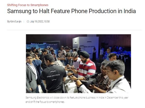 據(jù)印度媒體 7 月 18 日報道,三星電子已決定于今年 12 月關(guān)閉其在印度的功能手機業(yè)務,并將重點轉(zhuǎn)向智能手機。