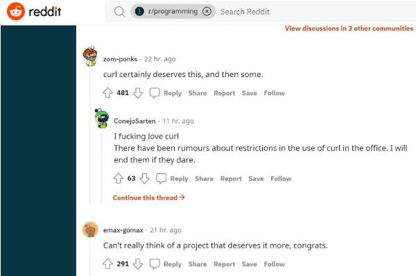 " 真的想不出有什么其他項目更應(yīng)該得到這項榮譽(yù),恭喜 curl。"