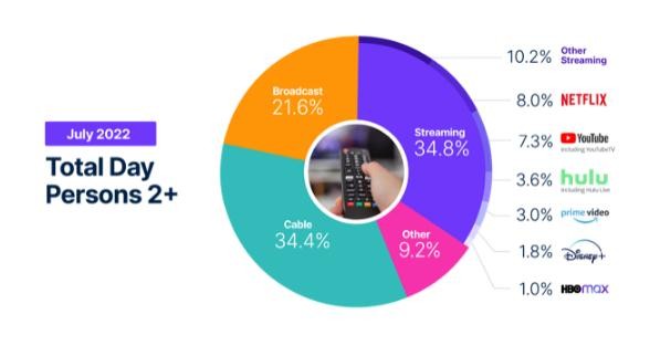 最新數據顯示,以奈飛為首的流媒體平臺的收視率在 2022 年 7 月首次超過了有線電視網絡,占據當月美國電視收視的最大份額。數據僅包括在電視和聯網電視上觀看的節目,移動或網絡流媒體不在考慮范圍之內。這一結果在意料之內,因為近年來流媒體使用量持續攀升,而傳統有線電視在斷線損失的持續影響中下降。