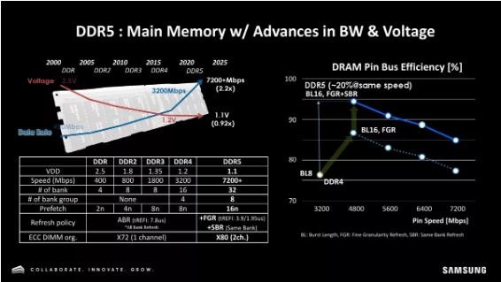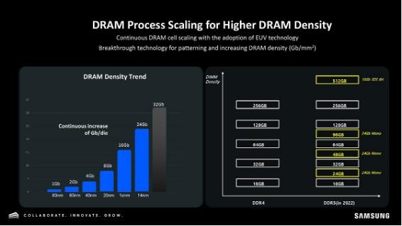 為了支持英特爾和 AMD 下一代平臺,三星準備推出一系列全新的 DDR5 內存模塊,比如基于 16Gb 和 24Gb 的 DDR5 芯片的業界首款 512GB RDIMM/LRDIMM。在近期三星和 AMD 的內存研討會上,雙方探討了 DDR5 內存技術上的新方向,同時三星透露了其 DDR5 的開發計劃。
