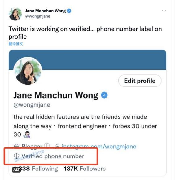當(dāng)?shù)貢r間 8 月 19 日,科技媒體 The Verge 報道稱,工程師 Jane Manchun Wong 發(fā)現(xiàn)推特在用戶資料欄中添加了“電話號碼認(rèn)證(Verified phone number)”標(biāo)簽。